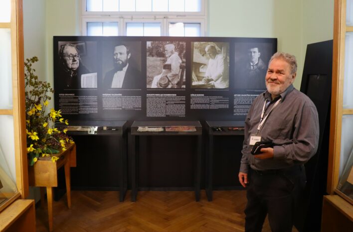 Izstāde “Dižu ļaužu mazās lietas” iepazīstina ar Krišjāni Valdemāru, Augustu Dombrovski, Kārli Baronu, Arturu Baumani un Sofiju Dravnieci – šī gada jubilāriem, kas bijuši arī Krišjāņa Barona domubiedri, līdzgaitnieki vai pētnieki. Līdzās viņu biogrāfijām un nozīmīgākajiem sasniegumiem izstādē apskatāmi arī ikdienas priekšmeti, kas glabā stāstus par personību cilvēcisko pusi – kāršu kava, izšūts lakatiņš, tintes susinātājs, papīra nazis un citas lietas. Šīs “mazās lietas” atklāj viņu paradumus, gaumi un aizraušanos. No Krišjāņa Valdemāra kolekcijas izstādē skatāma viņa tintnīca.