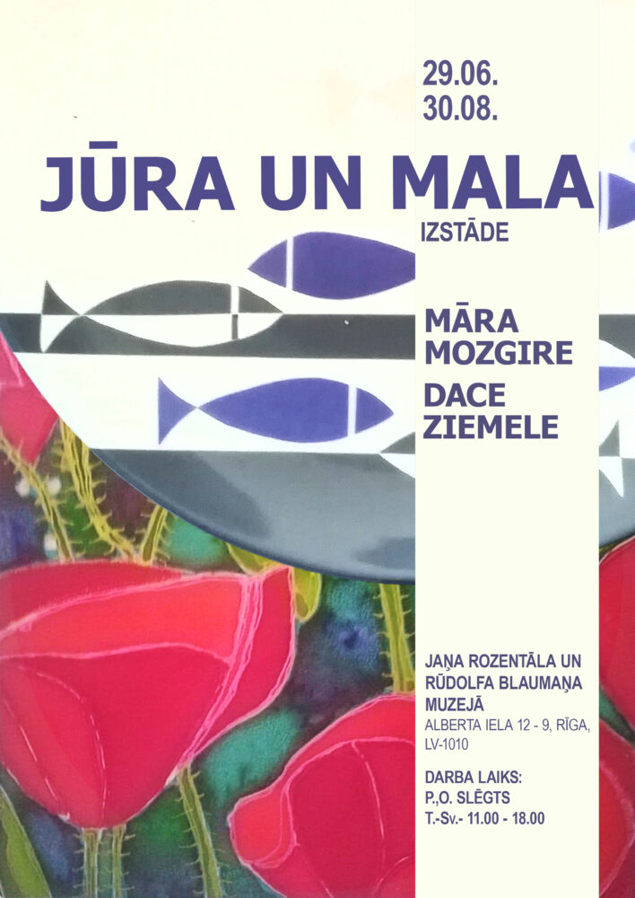 Jaņa Rozentāla un Rūdolfa Blaumaņa muzejs (Rīga, Alberta iela 12-9) aicina uz Daces Ziemeles un Māras Mozgires darbu izstādi “Jūra un mala”, kas notiks no 29. jūnija līdz 30. augustam. “Jūra un mala” ir vizuāls dialogs starp kustību un miera stāvokli, krāsu un noskaņu pretstatiem.