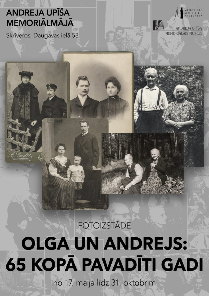 No 17. maija līdz 31. oktobrim Andreja Upīša memoriālmājā Skrīveros, Daugavas ielā 58, aplūkojama fotoizstāde, kas veltīta Andreja Upīša un viņa sievas Olgas 120 gadu laulības gadadienai.