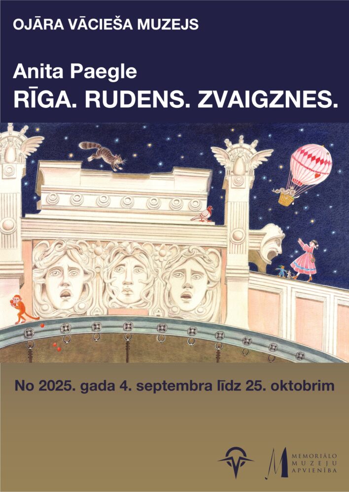 No 4. septembra līdz 25. novembrim Ojāra Vācieša muzejā Ojāra Vācieša ielā 19, Rīgā, aplūkojama mākslinieces Anitas Paegles personālizstāde “Rīga. Rudens. Zvaigznes.” Izstādē skatāmas ilustrācijas Māras Cielēnas grāmatai “Sfinksas Albertas smaids”, Jura Zvirgzdiņa grāmatām “Ziemas pasaka” un “Miega pasaka”, Ineses Zanderes grāmatai “Kaķis uz klavierēm”, kā arī pašai māksliniecei svarīgas un mīļas lietas, kas kalpojušas par iedvesmu darbu tapšanā.