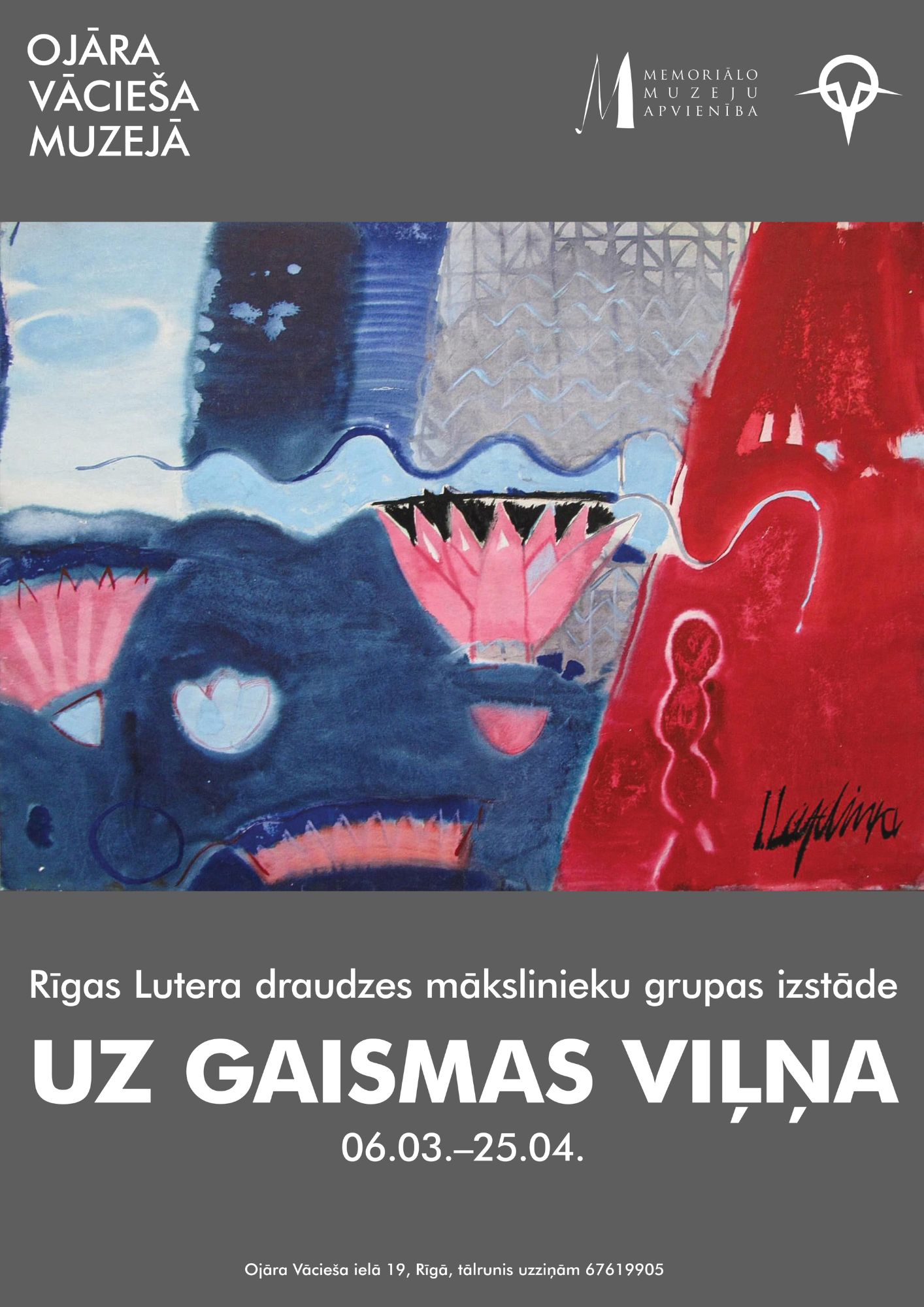 Ojāra Vācieša muzejā (Rīgā, Ojāra Vācieša ielā 19) no 6. marta līdz 25. aprīlim aplūkojama Rīgas Lutera draudzes mākslinieku grupas izstāde “Uz gaismas viļņa”. Izstādes dalībnieki pēta gaismas fenomenu, izmantojot katrs savai tehnikai raksturīgās izteiksmes iespējas.