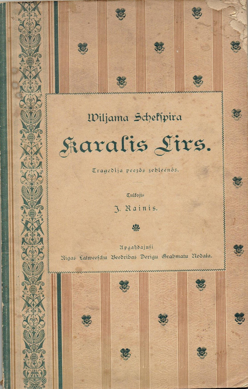 Līra sabiedrībā valda liekulība un netaisnība, bet tas tiek apjausts, kad jau ir par vēlu. Tā ir pretstats Raiņa iztēlotajai nākotnes sabiedrībai. Rīgas Latviešu biedrības Derīgu grāmatu nodaļā 1900. gadā iznāk Raiņa pirmo reizi latviski tulkotais “Karalis Līrs”, pie kura viņš strādājis, dzīvodams trimdā Slobodskā. Vēlāk, 1912. gadā, tas iekļauts Raiņa “Kopotu tulkojumu” sējumā, kā arī tiek publicēts atsevišķā izdevumā “Universālās bibliotēkas” sērijā Anša Gulbja apgādā Pēterburgā.