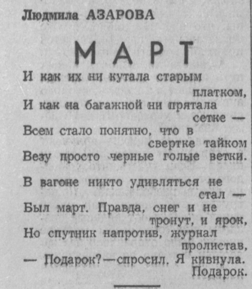 Людмилa Азарова, "МАРТ" (Marts). Советская молодежь. Nr. 198 (06.10.1957)