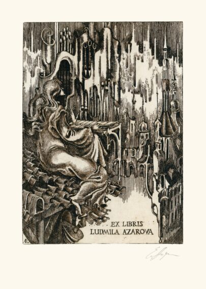 Ludmilas Azarovas ekslibris. Māksliniece Jeļena Antimonova, 1981. OVM_14254