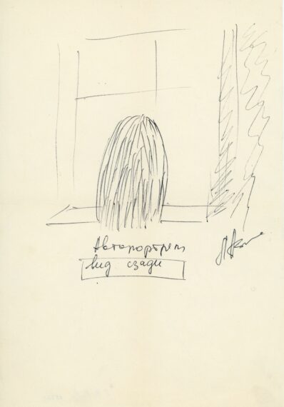 Ludmilas Azarovas pašportrets, labojumi, iespējams, Ojāra Vācieša rokrakstā. Bez datuma. OVM_15782